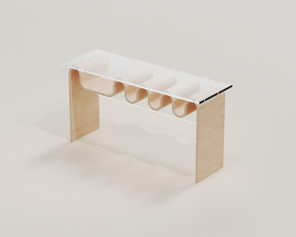 The Aalto Desk is named after the Finnish word for “wave” because of its undulating form. These curves create a flowing body visible under a glass worktop. Forget having to pull out hinged drawers with hardware that will just rust or give way overtime. Bored Eye Studio took a minimalist yet functional approach with this desk.