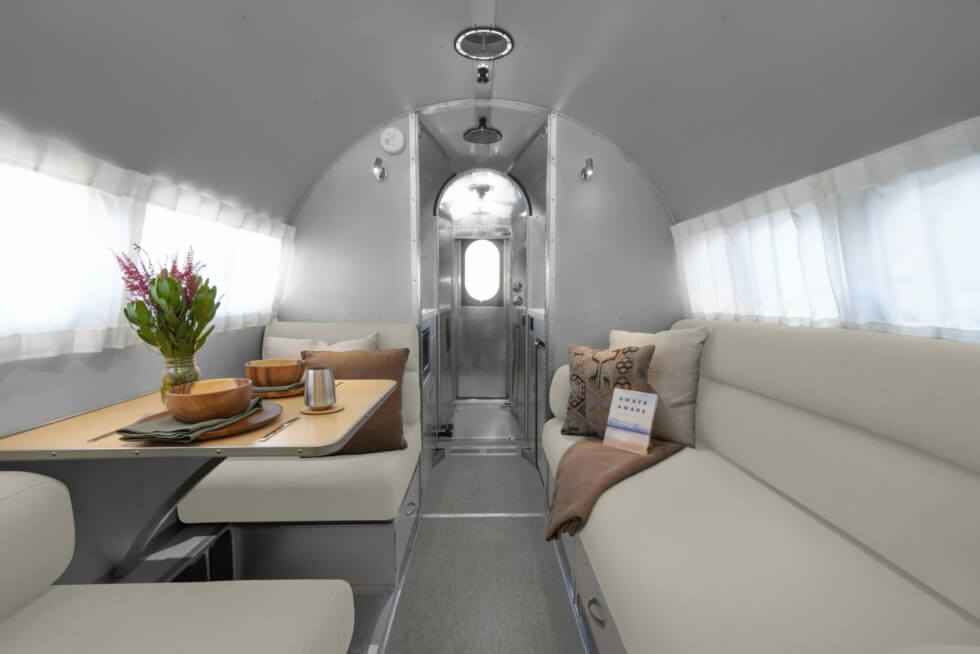 At first glance, we thought this camper was a new model from Airstream. It flaunts the company’s signature aluminum exterior and aviation-inspired outline. However, this is actually a travel trailer from Bowlus, which it calls the Heritage courtesy of its classic design. It may look retro, but what we have here is modern luxury living on the move.