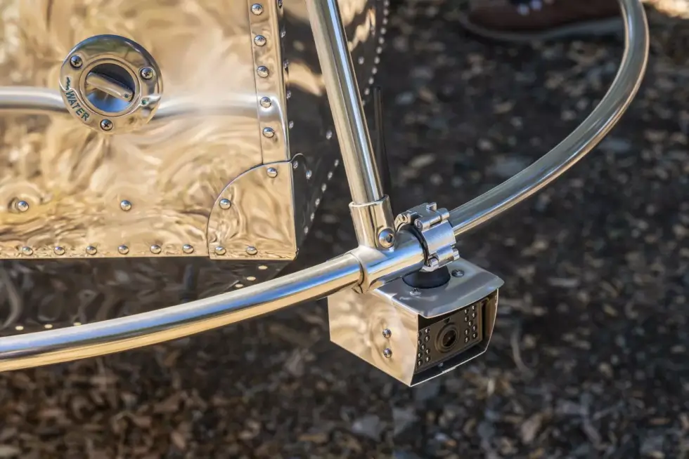 Bowlus indicates a spaceframe chassis clad in a mirror-polished aluminum shell. The Volterra is packing a whopping 17 kWh battery system and an AeroSolar setup to harvest energy from sunlight. It uses monocrystalline Passivated Emitter and Rear Contact (PERC) technology.