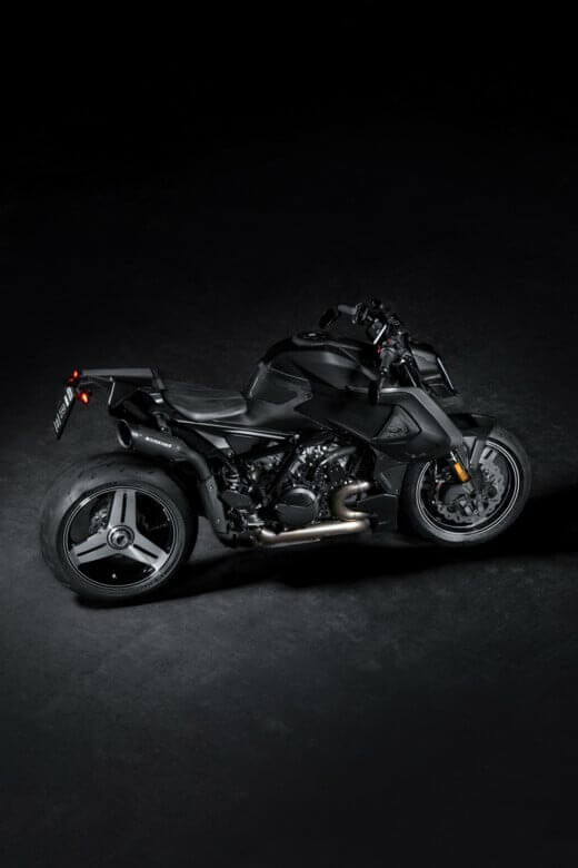 Reports tell us that beneath its murdered-out customizations is a KTM 1390 SUPER DUKE R EVO. A solid and reliable motorcycle, in our opinion. Courtesy of BRABUS’ expert modifications, its 1,350 cc LC8 V-Twin engine is now rated at 190 horsepower and 107 lb-ft of torque. Riders can also switch between several ride modes.