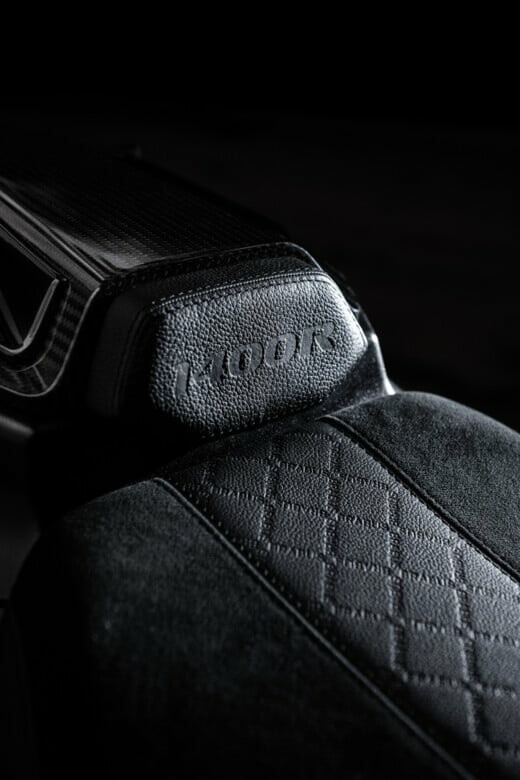“The intelligent handling is further perfected by the adaptive WP APEX Semi-Active Technology (SAT) suspension with electronically controlled magnetic valves for variable damping and sophisticated variability. At the touch of a button, the rider can choose from maximum comfort to racetrack-ready damping and support,” notes BRABUS regarding the 1400 R SIGNATURE EDITION.