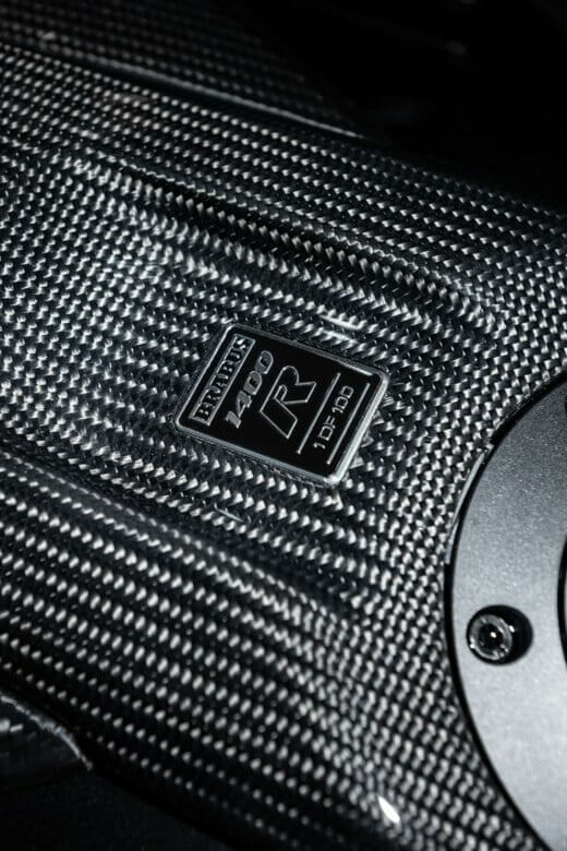 Likewise, the WIDESTAR bodywork appears captivating with the exposed carbon fiber weave and coat of Midnight Veil paint. Two vertical LED daytime running lights flank the twin headlamps. BRABUS badging also appears on various sections of the 1400 R SIGNATURE EDITION.