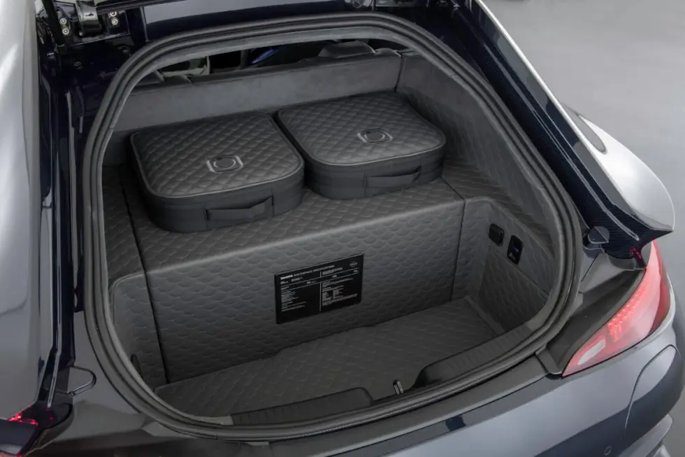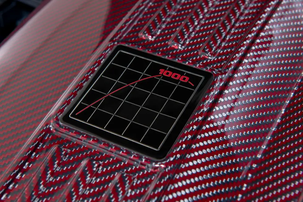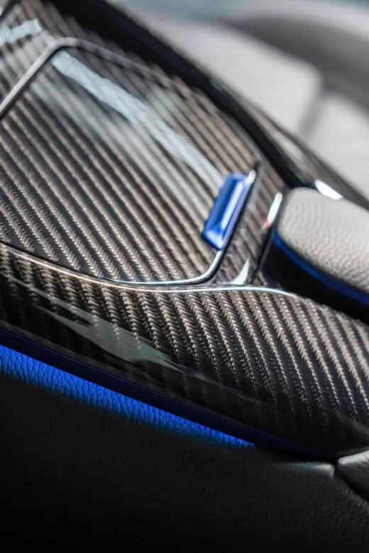 Its new exhaust system features custom catalytic converters, special particulate filters, and advanced active valve control. All four of its tailpipes receive stylish carbon fiber surrounds as well. Speaking of the composite, the eye-catching weave of its bodywork flaunts a bold azure shade.