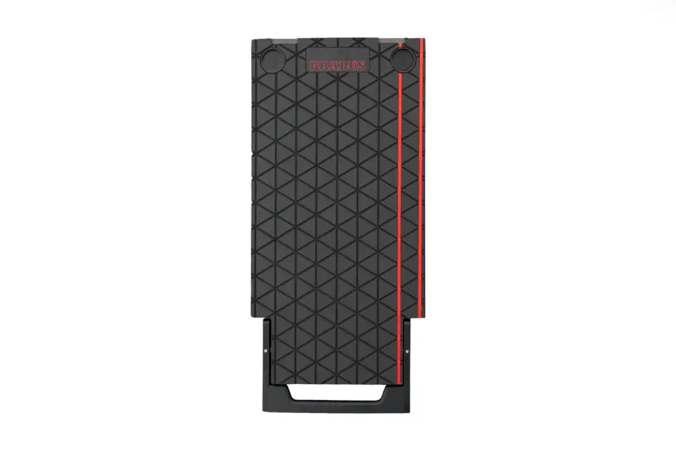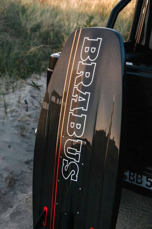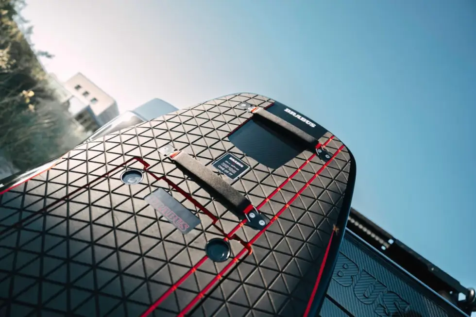 Its carbon fiber construction measures roughly 73.22″ x 28.74″ x 8.27″ (LxWxD) and weighs about 88.2 lbs. Since this is BRABUS we’re dealing with here, the overall aesthetics are oozing a menacing yet stylish vibe. It’s almost completely tonal, save for decorative elements in red and branding in white.