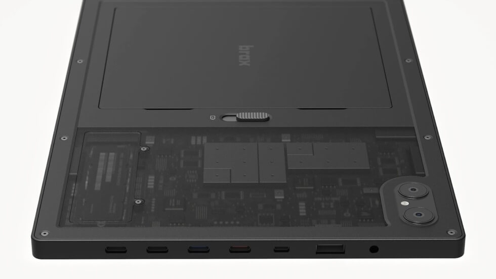 For durability, the build uses PC and ABS with TPU elements to withstand accidental drops or bumps. The open_slate pro measures 9.79″ × 7.07″ × 0.35″ and tips the scales at 1.4 lbs. It’s outfitted with a MediaTek Genio 720 SoC alongside 16 GB of LPDDR5X RAM and a 256 GB internal storage. Instead of a microSD slot, you’re getting a PCIe slot for SSD upgrades.