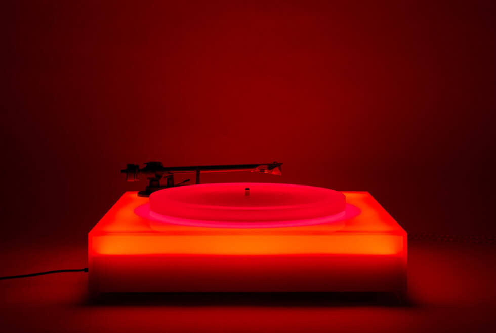 The device features color-changing LEDs that create a psychedelic light show in a dark room. It’s clever of Eno to use translucent acrylic for its construction. If he went with a more transparent material, the effect wouldn’t be the same. Instead, the turntable emits a diffused glow that draws the listener deeper as the beat continues.
