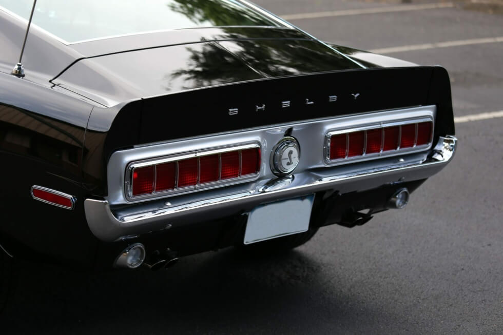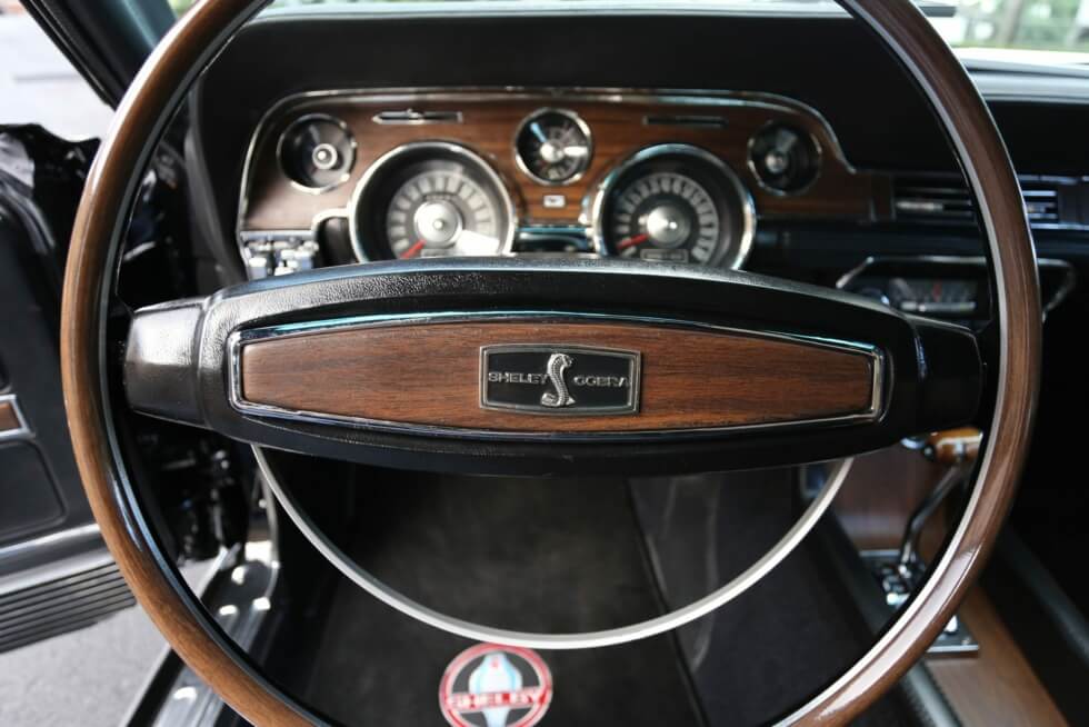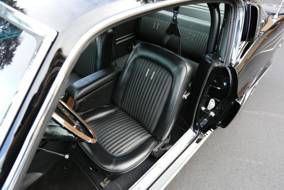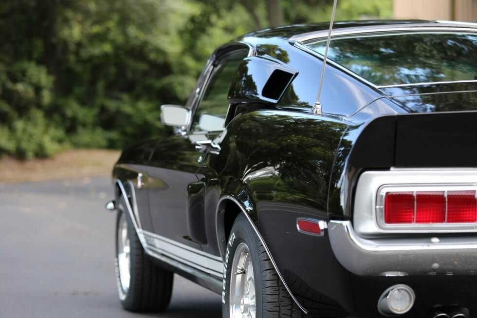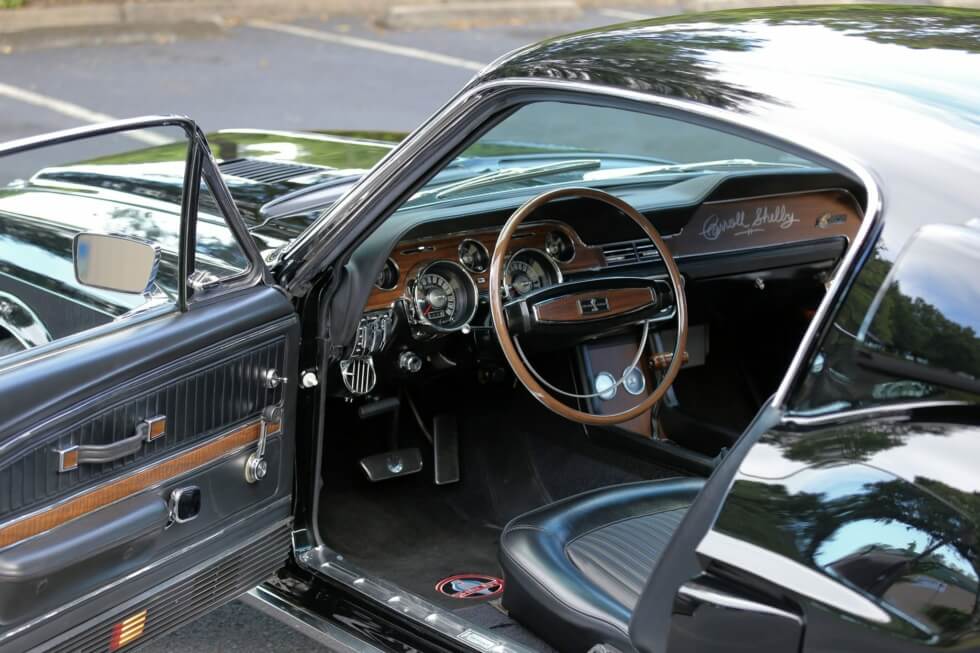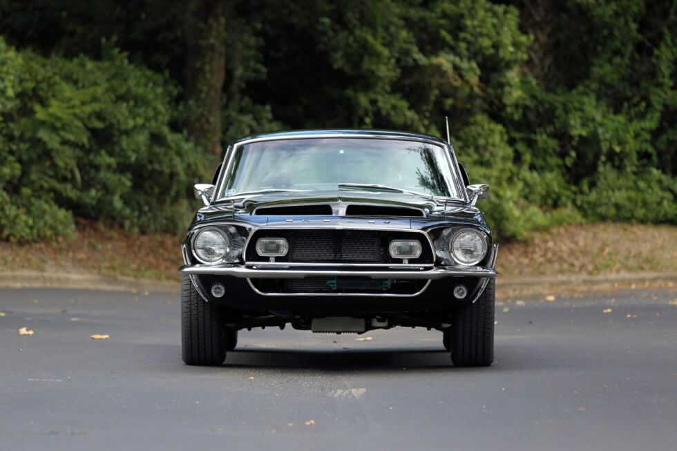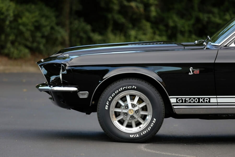 We’re also looking at a 3.50:1 Traction-Lok differential. This 1968 Shelby Mustang GT500KR now boasts power steering and air conditioning to go along with the black vinyl upholstery of the interior. Other add-ons include the fiberglass hood with ram air scoops and grille-mounted fog lights.
