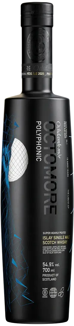 Meanwhile, its palate speaks of peat smoke, rich toasted oak, candied fruits, Moscatel grape, and brown sugar. Next is the Octomore Polyphonic Rock’ndaal 2025 Edition. It’s a super heavily peated 15-year-old Islay single malt whisky that flaunts a shade of polished amber.