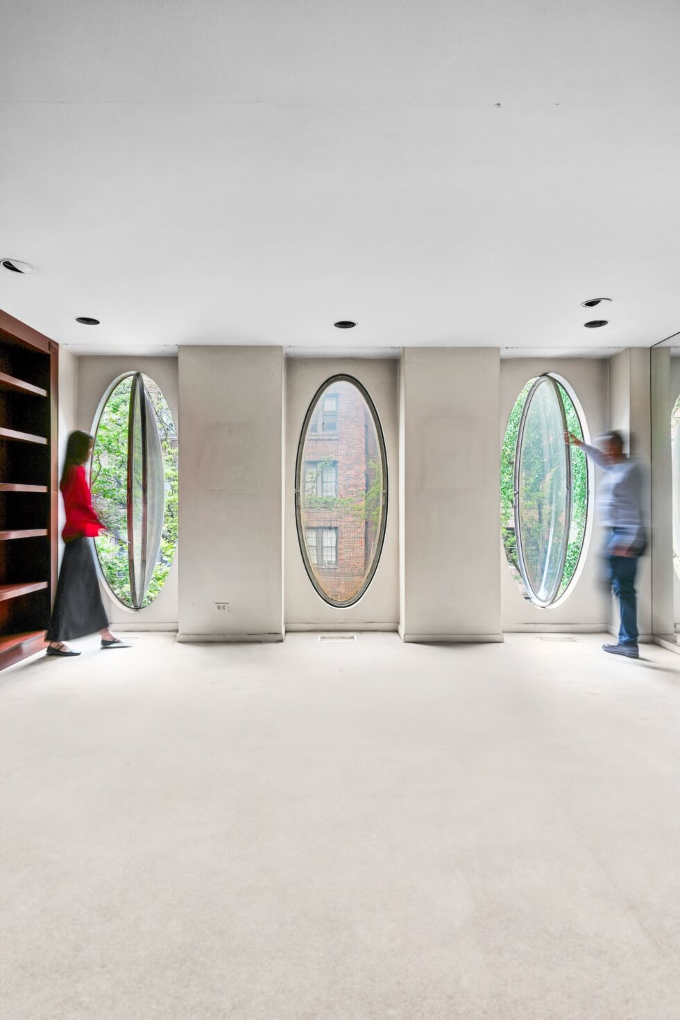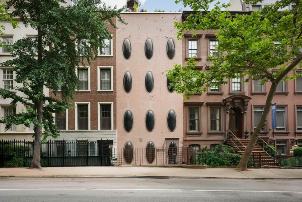 “Originally constructed as a traditional brownstone in the 19th century, the building underwent a visionary redesign in 1969 by architect Maurice Medcalfe of Hills & Medcalfe. Medcalfe transformed the façade into a modernist icon with its smooth stucco exterior and signature convex oval windows,” reads the 251 East 71st Street official description
