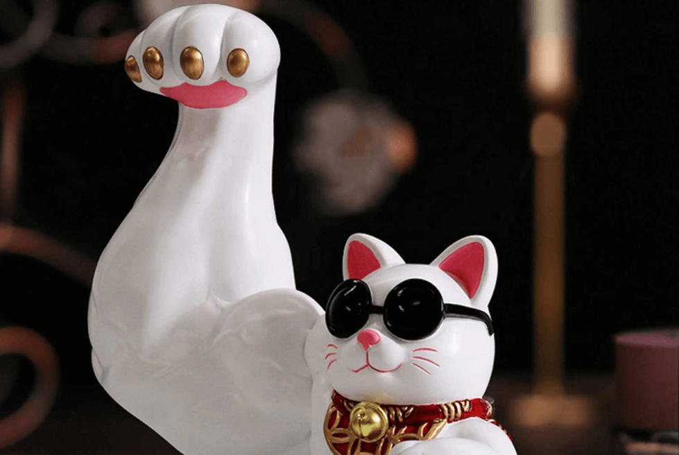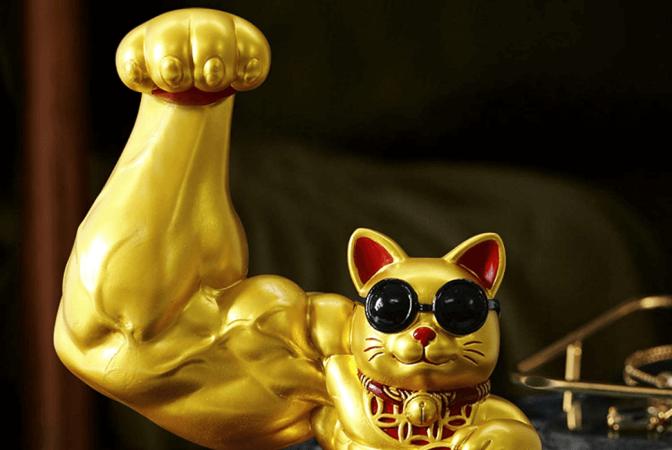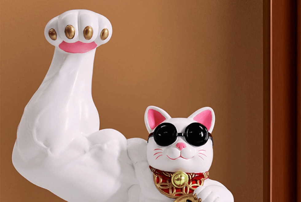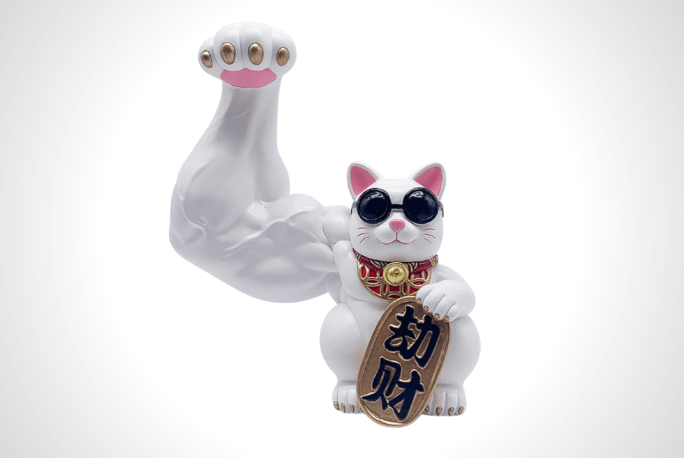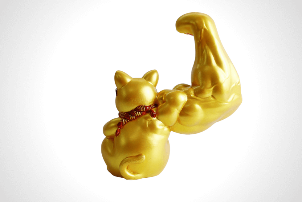 Poking fun at the traditional Maneki-Neko good luck charm, somebody is now crafting ones embodying the joys of muscle building. The Japanese claim that the beckoning cat – which you can spot in most Chinese or Japanese retail establishments and restaurants – attract customers. Much like how people love videos of feline shenanigans, this particular figurine would make any gym rat proud.