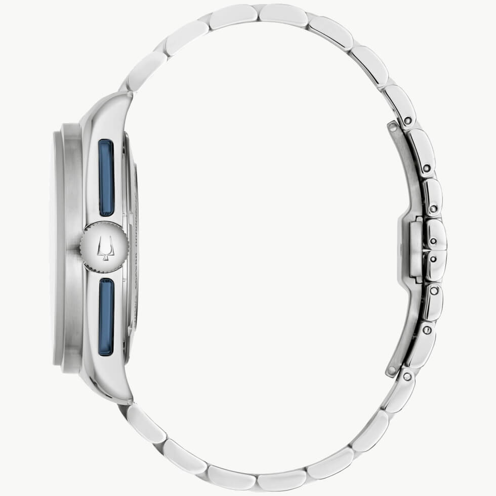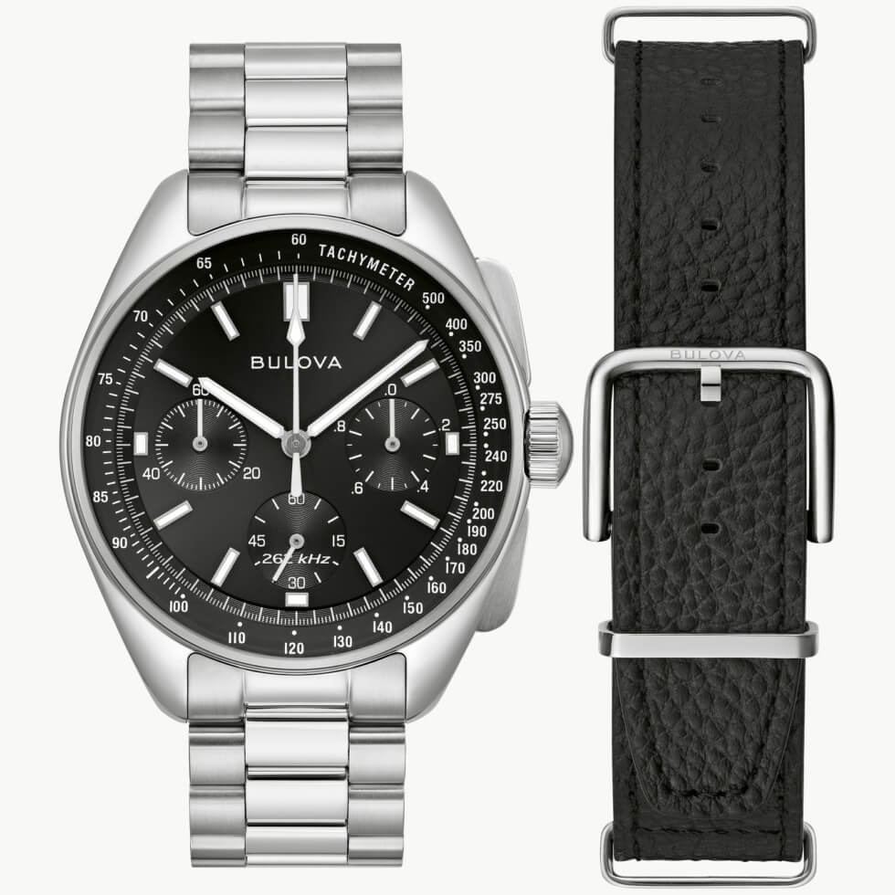Bulova is paying tribute to the iconic silhouette with two Lunar Pilot variants. These are slightly smaller than the Special Edition Lunar Pilot Chronograph Watch under its Archive Series in titanium and gold-tone stainless steel, which is at 45 mm. These two, on the other hand, sport stainless steel cases that measure 43.5 mm x 13.5 mm.