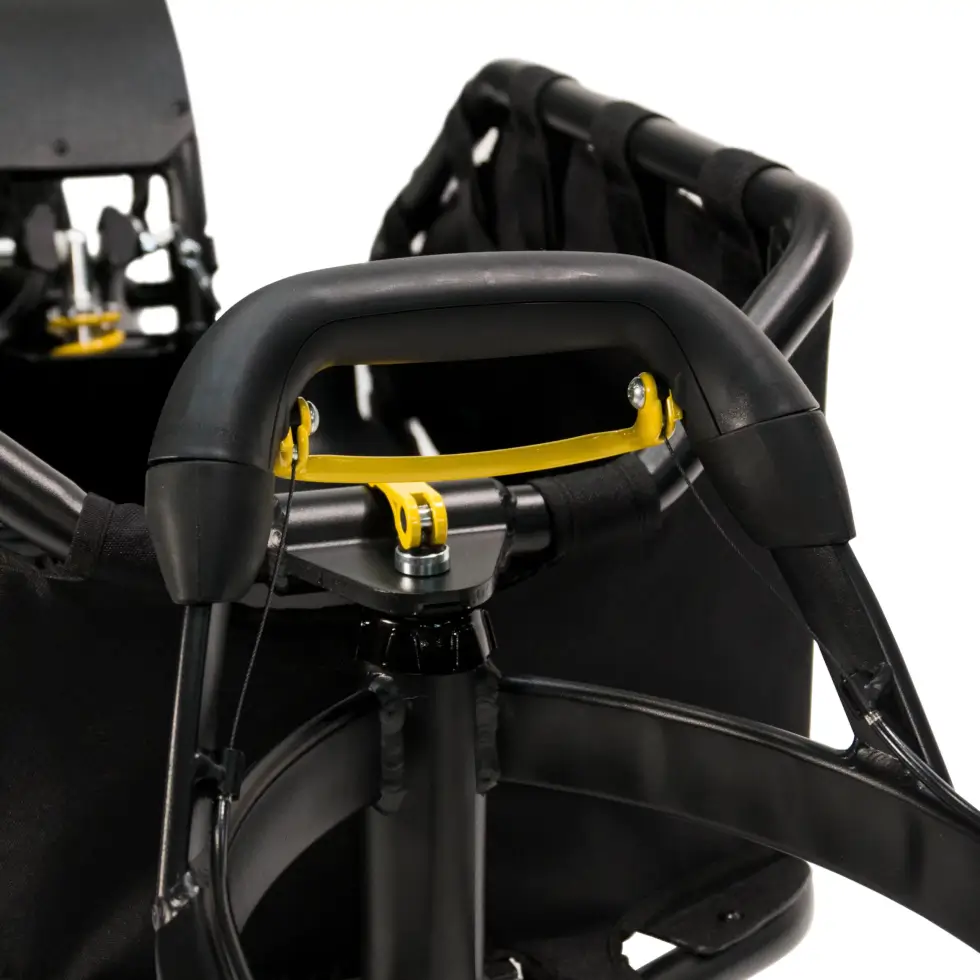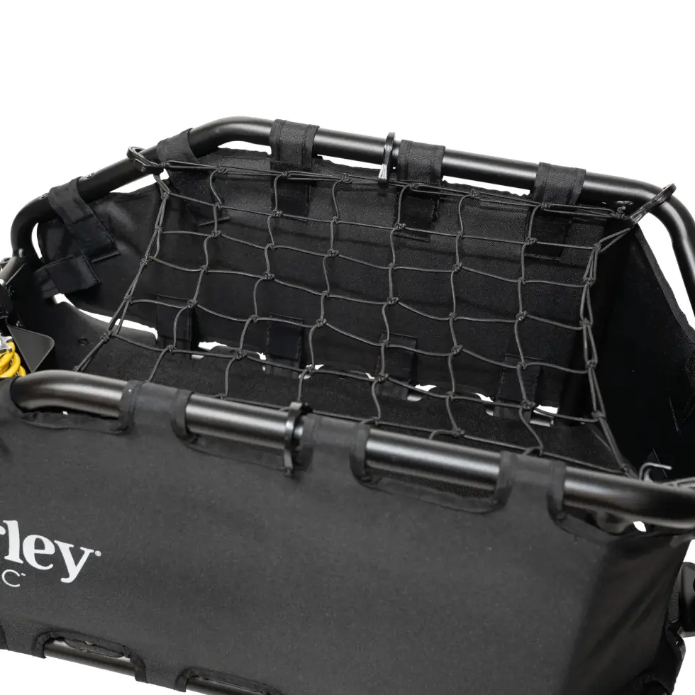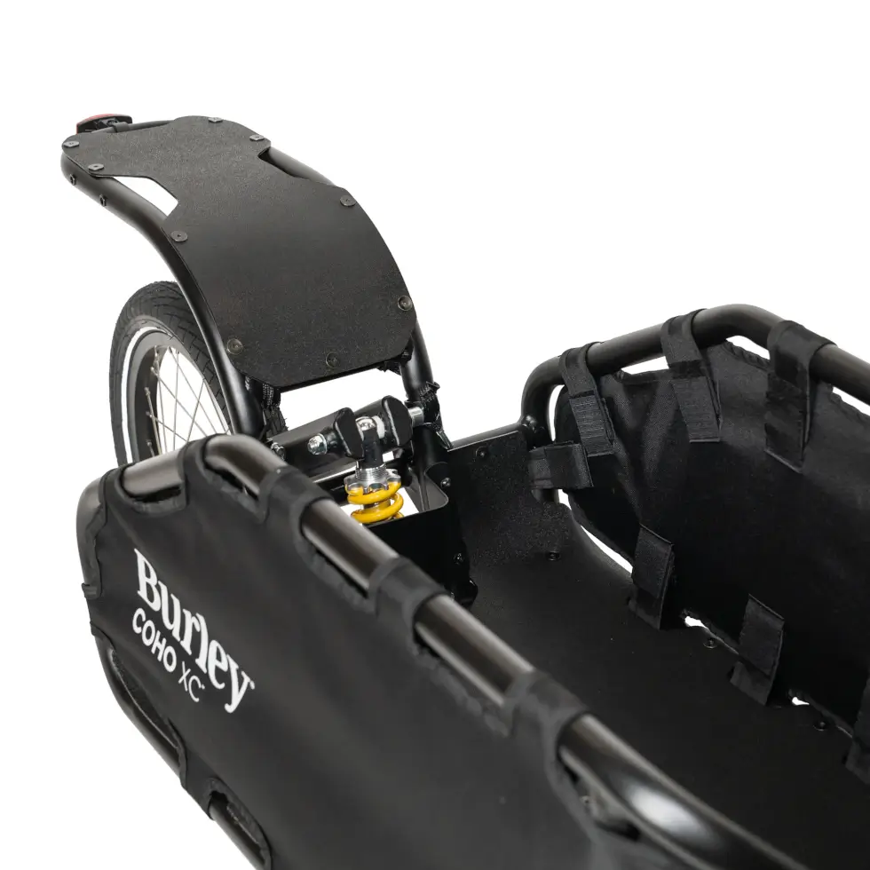 A coil-spring suspension enhances stability, while the single-wheel configuration minimizes rolling resistance. The Coho XC hooks up via a special axle (sold separately) and its quick-disconnect mechanism features a release handle for single-hand use. Velcro straps make it easy to remove and clean the cargo net.