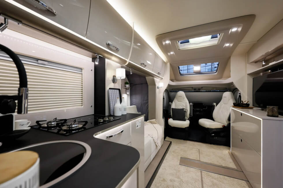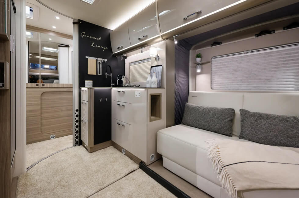 Campers come in all shapes and sizes. The most popular type are trailers which can be hauled with an SUV, pickup truck, or even smaller vehicles in some instances. These days, conversions are in demand as clients get to customize everything from the ground up. Bürstner shares a concept called the HABITON – a compact option ideal for smaller parties.