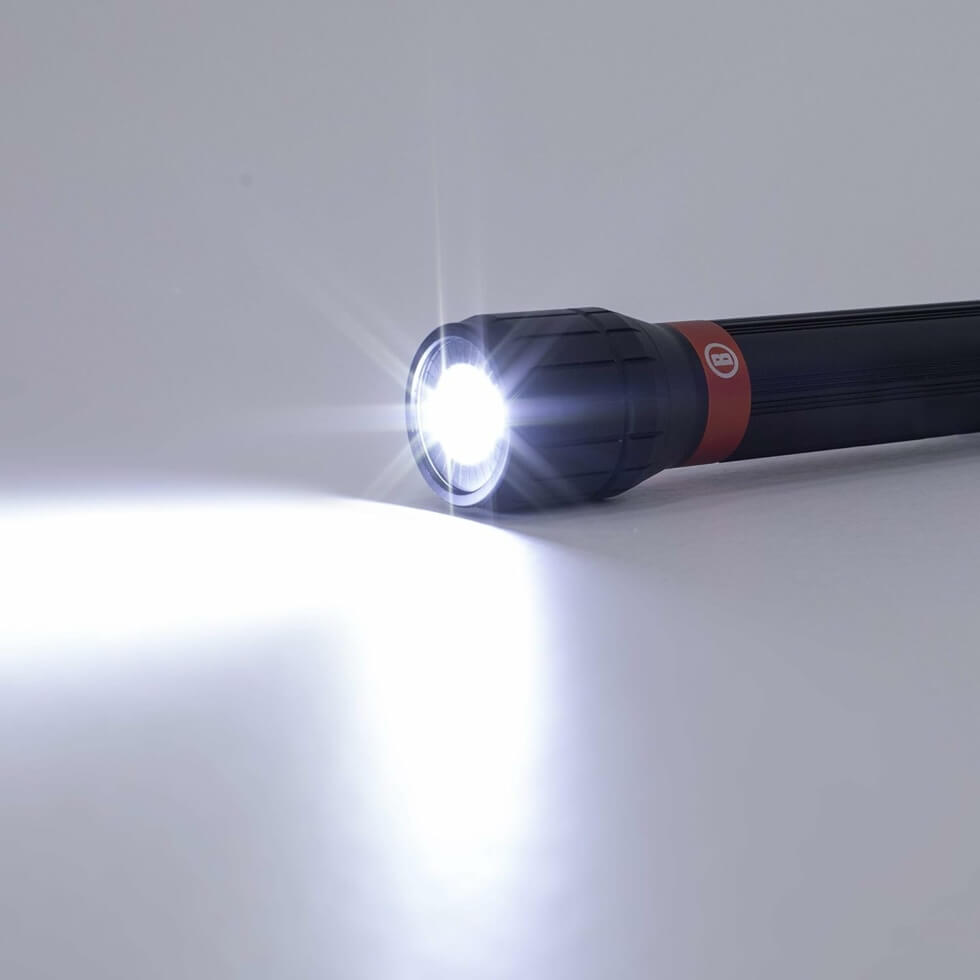 This portable light sits comfortably in the hands and slips nicely in deep pockets at a very sleek and lightweight design. It weighs only 16 oz. (0.45kg) and measures 12.91″ x 7.6″ x 2.91″. Likewise, it doesn’t heat up when used under high mode for a prolonged time even for eight hours. The Bushnell 2000 Lumen Rechargeable Flashlight is built tough and ready for action thanks to a quick-charging feature.