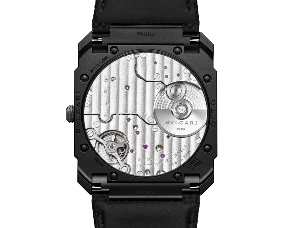 Sadly, the sapphire crystal of its exhibition case back affords a view of the Calibre BVL 138. This in-house automatic movement is 2.23 mm thin and features a platinum micro-rotor and 31 jewels. It beats at 21,600 VPH and boasts an impressive 60-hour power reserve when fully wound.