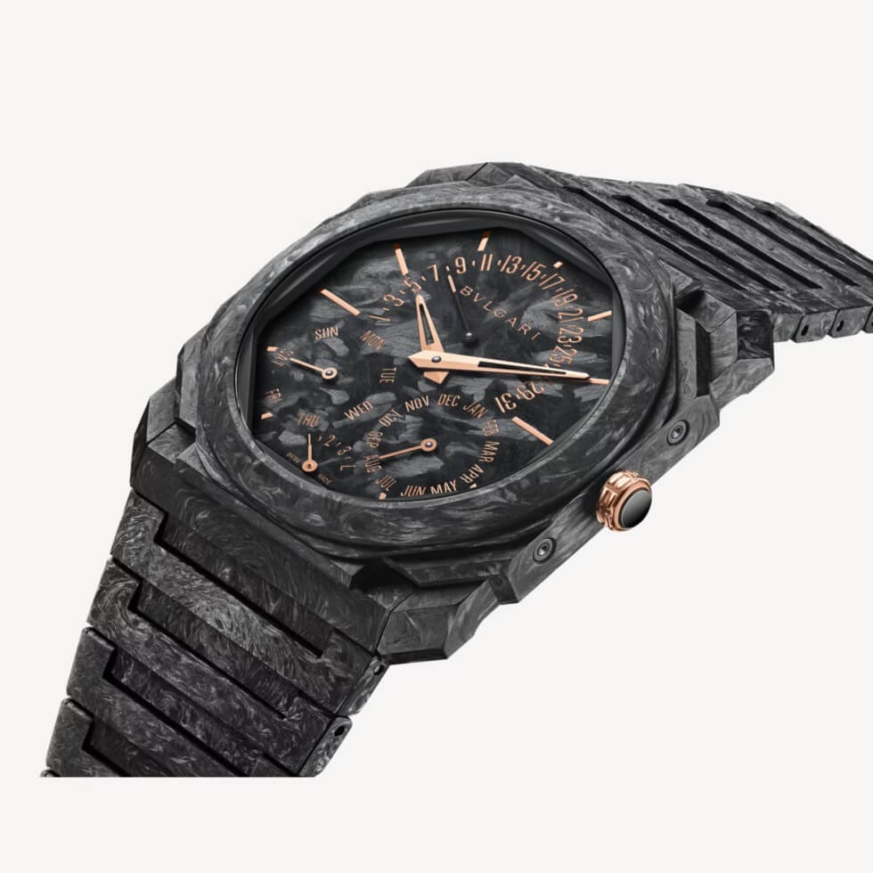 If we could sum up everything about this timepiece, we would call it the physical expression of sophisticated elegance. It may sound like there’s too much in the way of functions, but it’s practically on the modest side. To start off, the Italian luxury goods label presents two variants of its Octo Finissimo CarbonGold: Automatic and Perpetual Calendar.