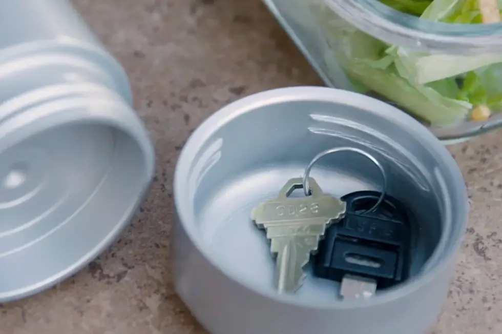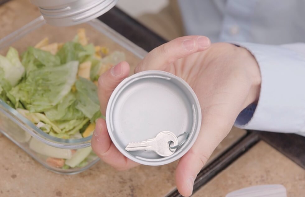 Then there’s the detachable stainless steel spork conveniently tucked into its own spot also outside the bottle. Meanwhile, built into the base is a hidden compartment to store small items including keys, cash, coins, medicines, and more. The non-slip rubber bottom also helps prevent accidental spills from bumps or sudden movements.
