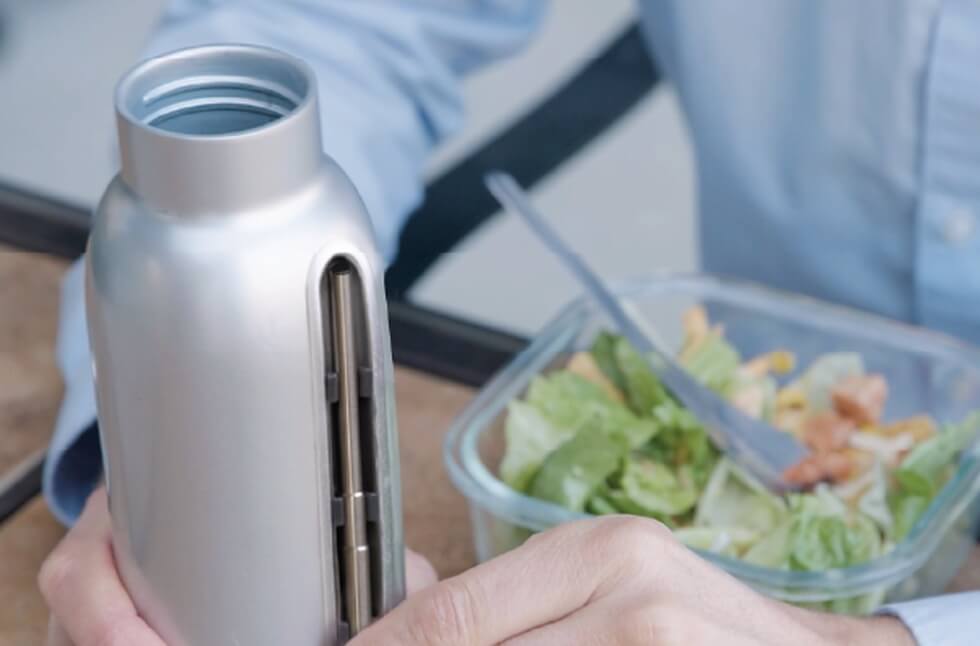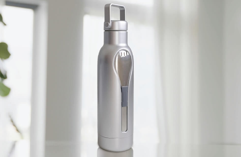 This bottle comes from the same team who brought the “I Am Not A Paper Cup” design to the public in 2009. Geared toward sustainability, it helps prevent plastic spoons, forks, and bottles from ending up in landfill or worse, the ocean. Dubbed the “Swiss Army knife” of bottles, it comes with useful functions for everyday use.