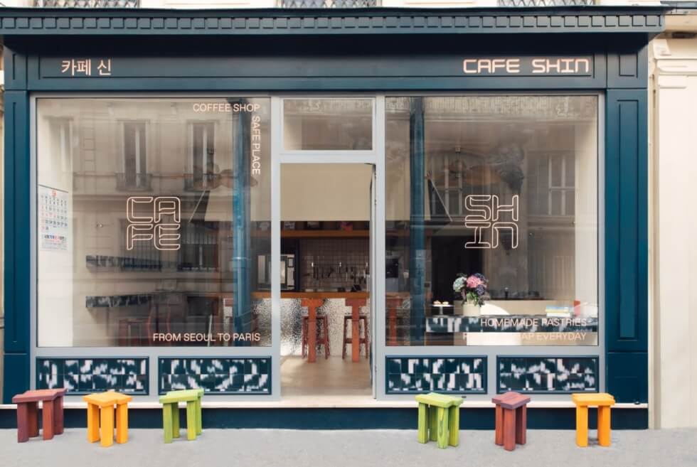 Thanks to Korea’s entertainment industry, and with the aid of its government, the world is currently crazy for its music, movies, TV shows, food, and traditions. You can find Cafe Shin at Rue des Petites-Écuries. The studio was tasked to create a motif straight out of Seoul. From the outside, we have a navy blue facade clad in Palet ceramic tiles.