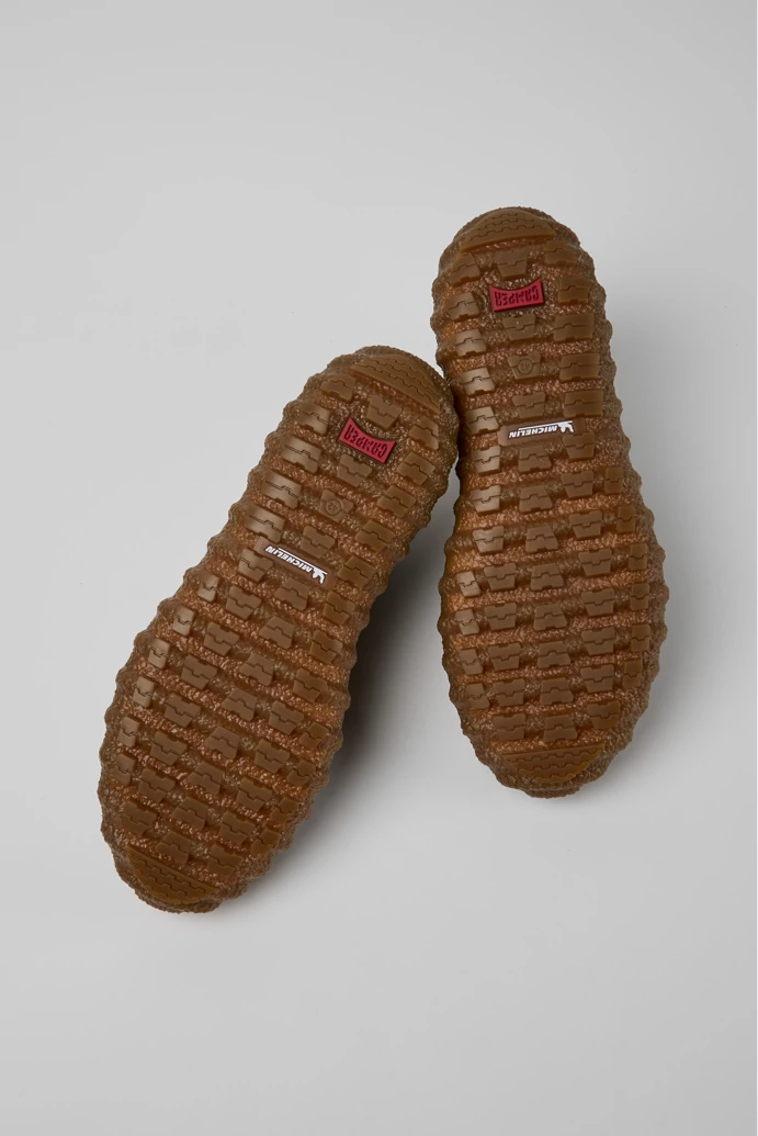 Meanwhile, the thick rubber outsole of the Camper Ground MICHELIN is hard to miss. The rubber outsole is inspired by the MICHELIN E-Wild bike tire with its aggressive, open tread pattern. Despite the chunky appearance, it has its benefits to the user. It provides superior grip and heel comfort with its multidirectional tread pattern. Likewise, the grooves make it easy to walk on wet surfaces making this pair great for winter wear.