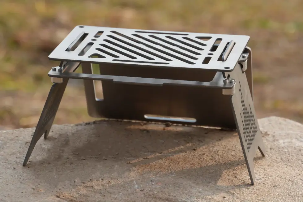TiStove offers tool-free assembly: simply prop up on the ground (the creators assure it’s stable on any surface) and use your desired cooking panel. There is the grill panel, side/base panels, and the sear panel.
