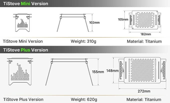 TiStove is available in Mini and Plus sizes and both are equally lightweight, easy to clean, and convenient to carry either in your pocket, backpack, or hang with its own hole.