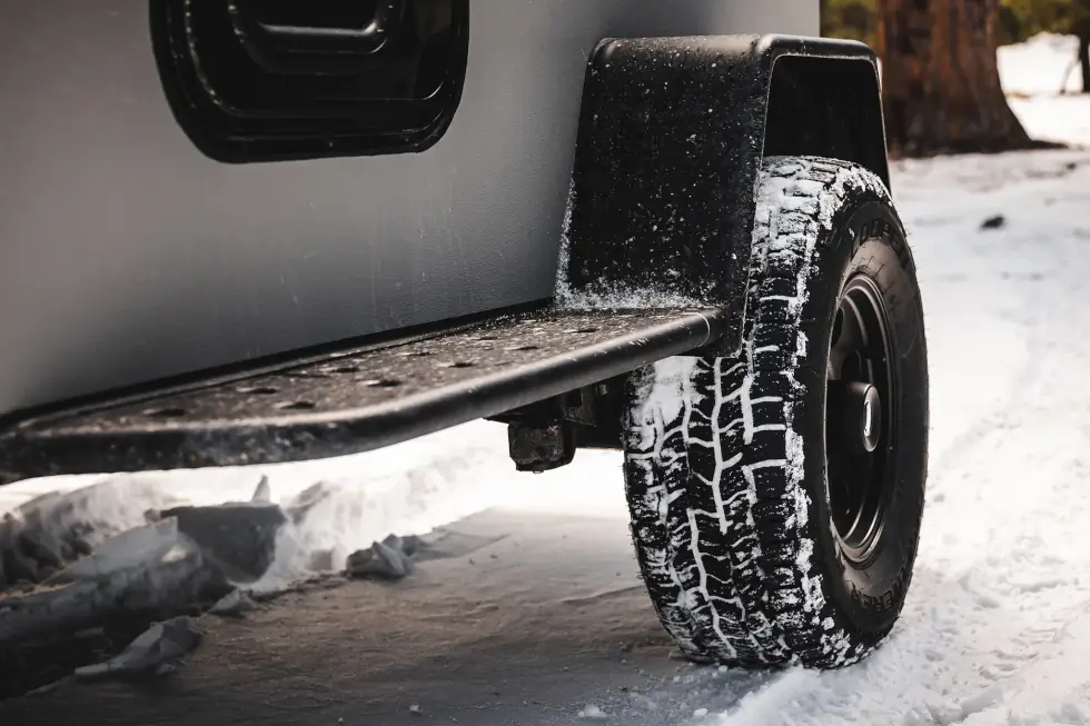 Since most EVs boast exceptional torque, compatibility shouldn’t be an issue. The camper measures 152” x 84” x 89” and will work with various mounts, racks, and other accessories. It rides on two 17” TRD wheels wrapped in 31” BFGoodrich all-terrain KO2 tires.