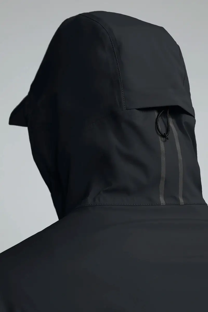 Designed for transitional seasons, this rain gear comes in a classic fit and length that reaches down to the hip. It’s lightweight enough to roll and has a cinch drawcord that helps to pack it down even further for easy travel. It also has a hood with a single adjustment point at the back that cinches two ways at once. The hood features an extended brim with a head skirt underneath so it moves with you but stays out of your line of sight.