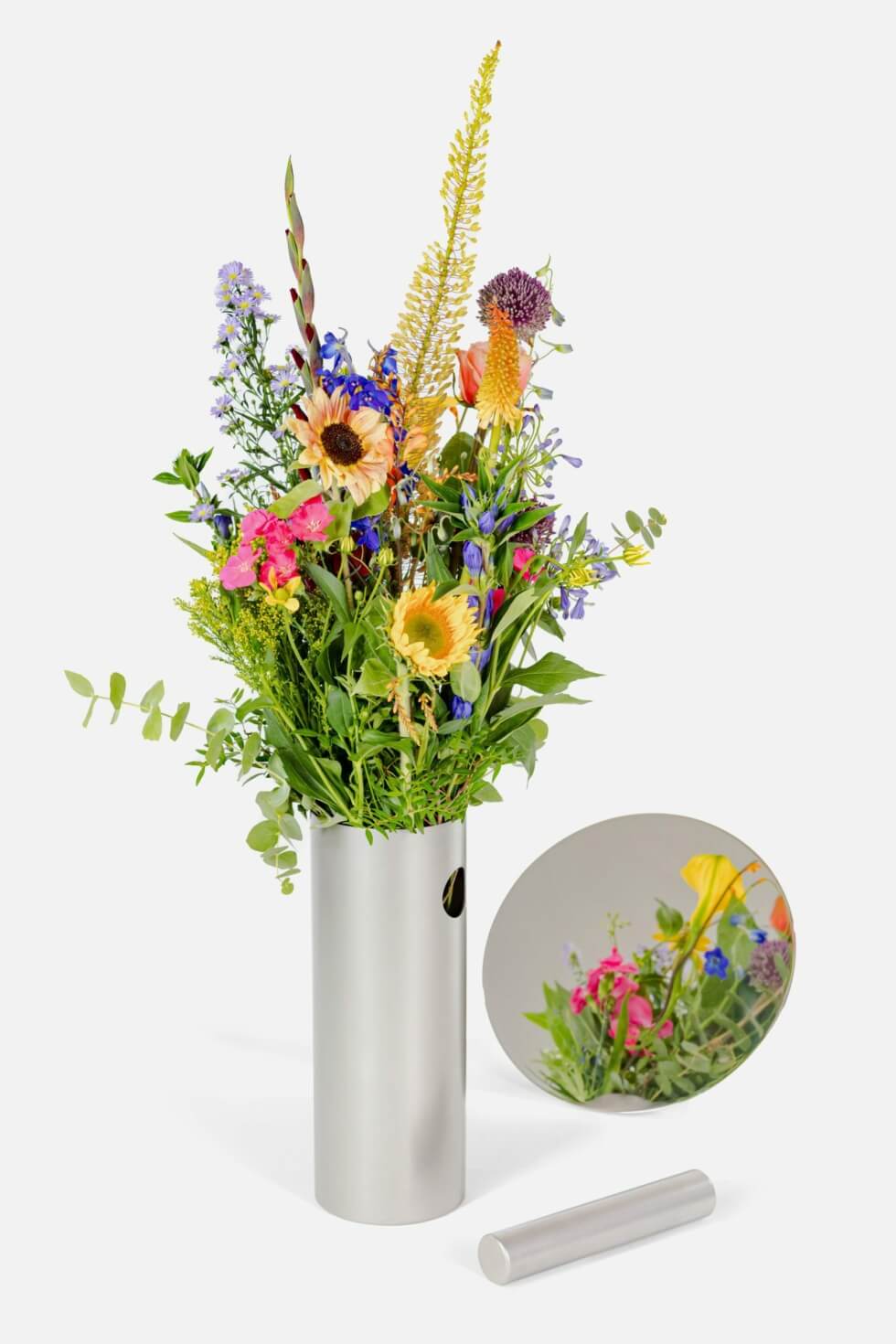 MIRO adapts to the ever-changing needs of its user. One day, it holds a cup of coffee, book, or phone while propped beside the bed or couch. A quick modification and it holds your favorite flowers and allows you to see your reflection.