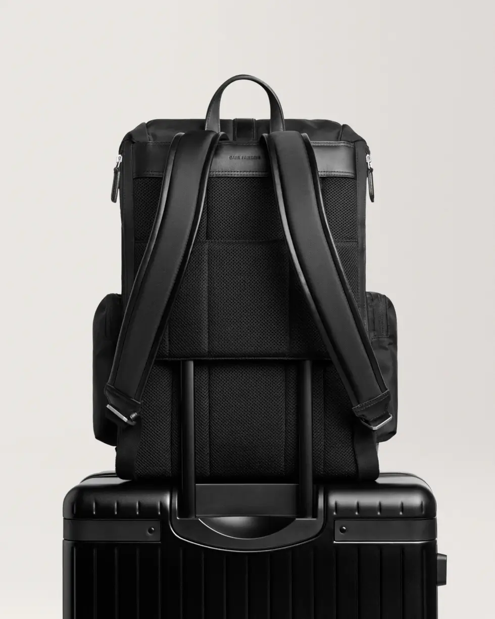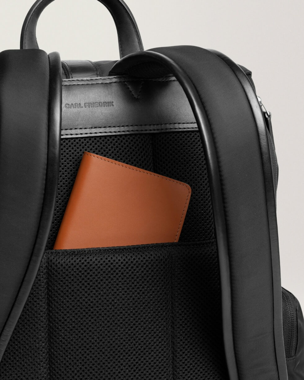 Carl Friedrik’s Traverse Backpack is constructed for durability and comfort. The padded mesh fabric straps offer maximum comfort on the shoulders and back. Meanwhile, the premium nylon exterior, made from 100% recycled nylon fabric, makes the pack resilient to all climate-related eventualities while maintaining its sleek look. Other details include Vachetta leather detailing, technical nylon canvas lining for strength, and custom nickel-silver-finished hardware for durability.