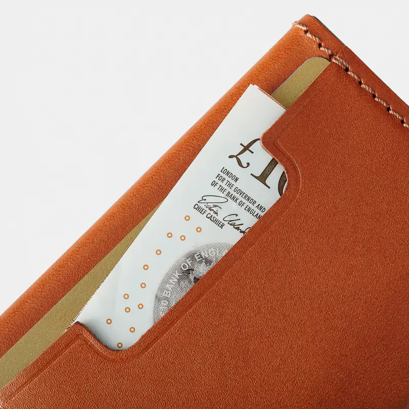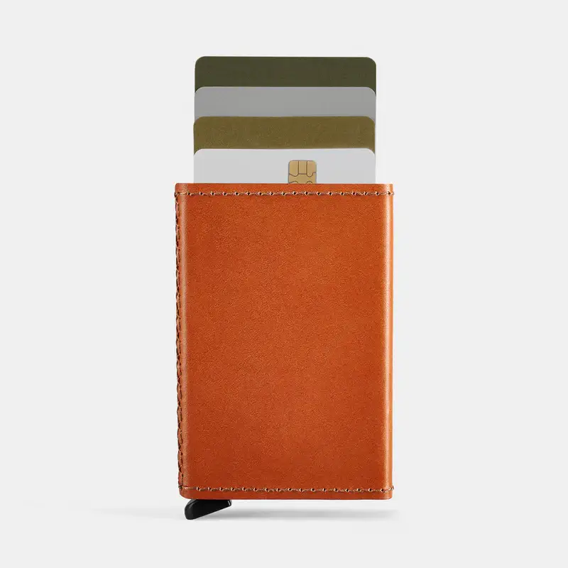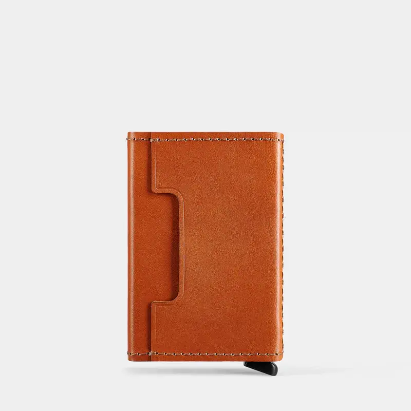 It offers a blend of durability and elegance in a minimalist yet timeless design. It elevates the everyday cardholder with materials and construction guaranteed for life. This everyday carry features an exterior made from smooth, vegetable-tanned Vachetta leather by Artigiano del Cuoio from Tuscany, Italy. The leather is then reinforced by robust automotive-inspired stitching, those found on steering wheels, to guarantee its durability. This stitching method is inherently tough and will not come undone.