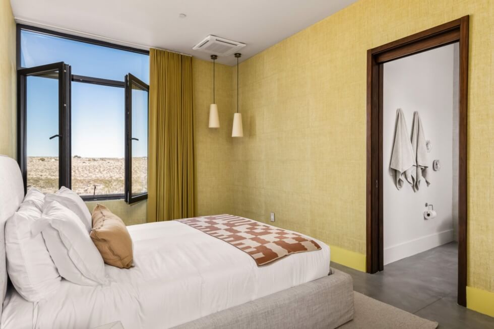 Meanwhile, step inside Casa Azzura to find an open-plan layout with tall ceilings and glazed windows for natural light. Expansive sliding glass doors connect indoor and outdoor spaces and carefully-curated furniture, textiles, and artworks add sophistication and charm.