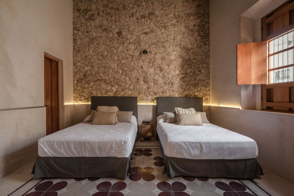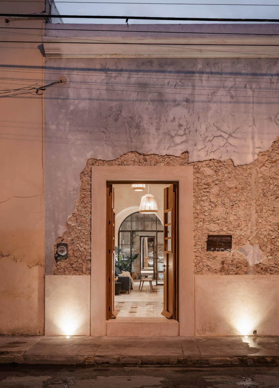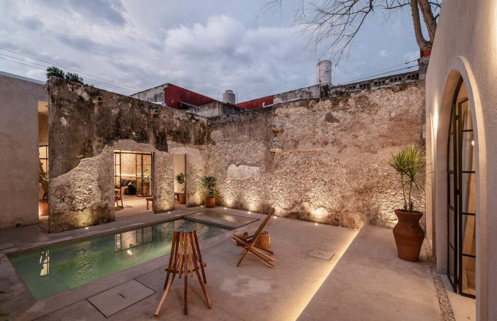 Casa Lohr emerges from an abandoned 19th-century colonial house in the historic center of Mérida, Mexico. 20Diezz Arquitectos restored the crumbling stone structure and preserved its historical beauty by conserving the interior vestiges. This includes remnants of an old masonry wall which becomes the defining feature of the house.