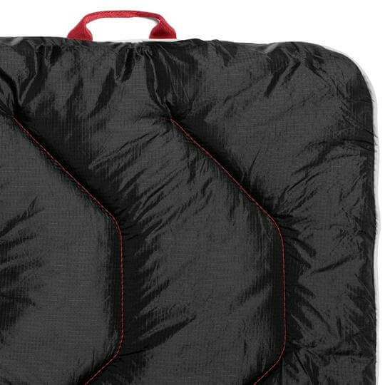 It is not pre-shrunk so it may shrink slightly when washed. Speaking of wash, it should be done so in cold water on a gentle cycle and then tumble dry or hang dry and never dry cleaned. The Cascade Mountain Tech Adventure Blanket can fit two people at its size of 70 inches by 60 inches. But you’re welcome to not share it. It is also amazingly lightweight for a puffy blanket at just 2 pounds. It even comes with its own nylon stuff sack that measures 16.5 inches by 9 inches. For hands-free use, you can utilize the integrated thumb loops.