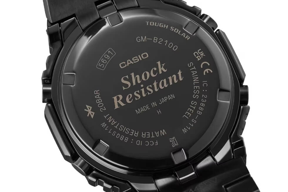 Take your pick from the GMB2100PC-1A (silver) and GMB2100BPC1A (black IP) as the two measure 49.8 mm x 44.4 mm x 12.8 mm and tip the scale at 165 grams. The analog-digital dial is framed by a fixed octagonal bezel engraved with the branding and functions of each corresponding button on the case middle.
