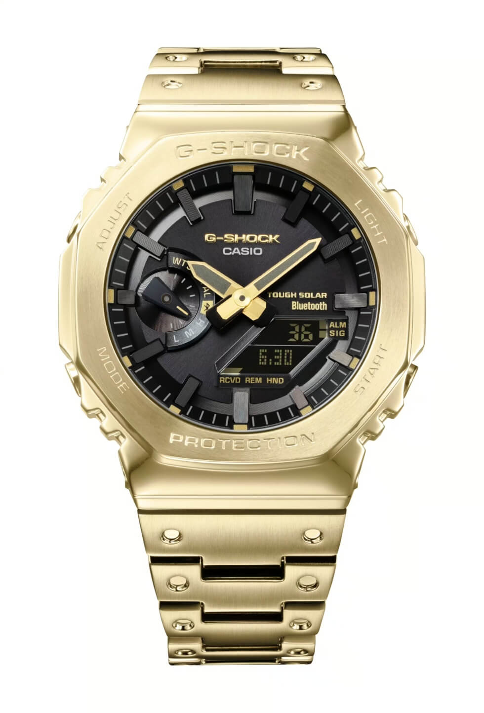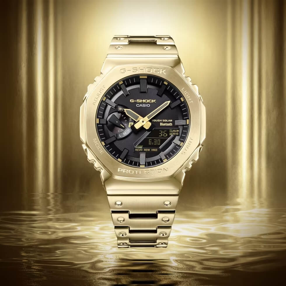 The only exceptions are the case back and dial, which are in a stealthy black hue. Despite the all-metal build, the GMB2100GD-9A lives up to the toughness G-SHOCK watches are renowned for. Each example that rolls out of the production line is guaranteed shock-resistant and water-resistant up to depths of 656 feet.
