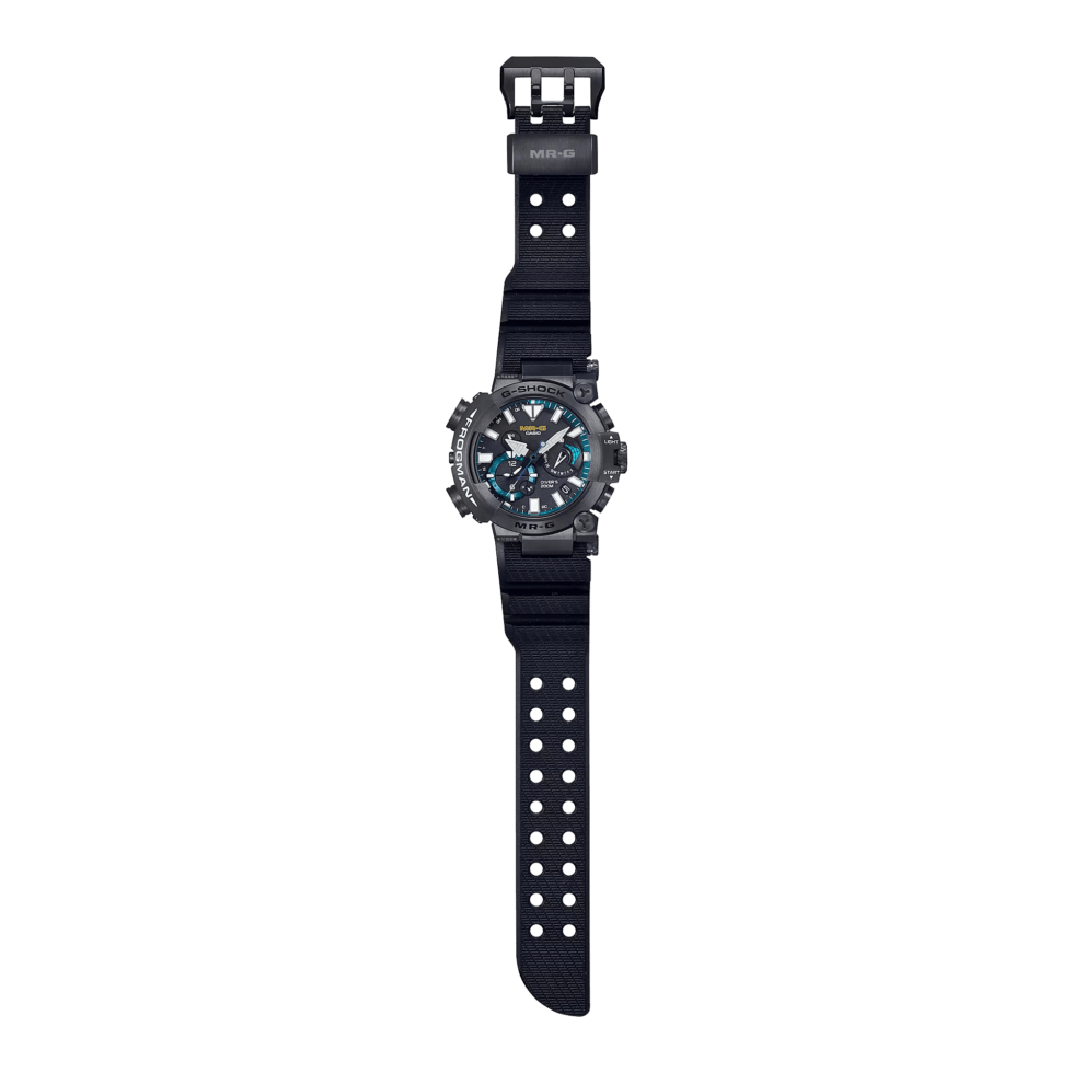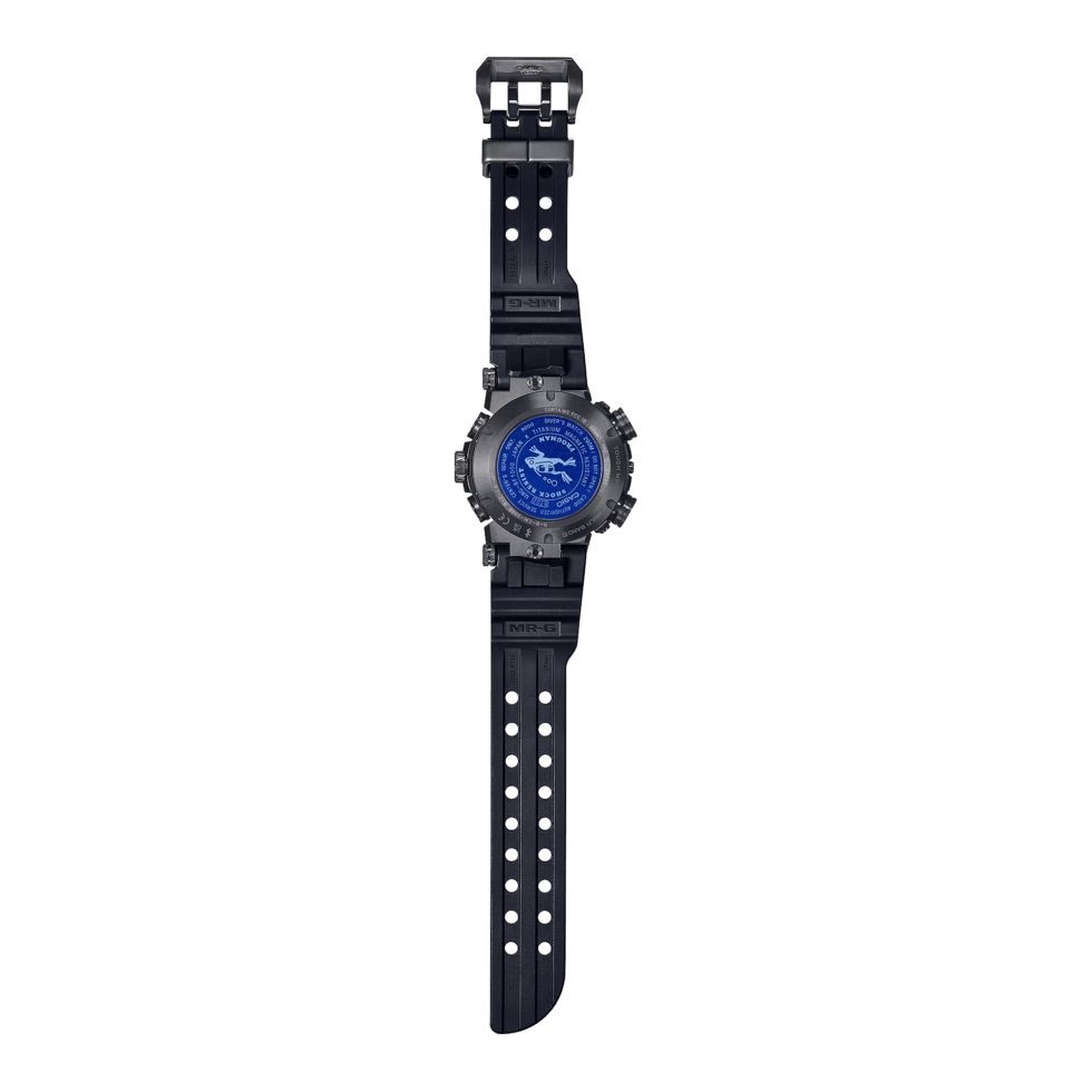 Meanwhile, the chunky bezel frames a matte black dial with multiple sub-dials, indicators, and a date aperture smack in between the 4 o’clock and 5 o’clock hour markers. It features Diving Mode, Tide Graph, World Time, and other essential timekeeping functions. Finally, Casio pairs the MR-G FROGMAN MRG-BF1000R-1A with a Dura Soft Fluoro Rubber strap and a titanium alloy buckle/band loop.