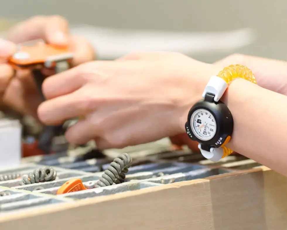 According to press materials, at its core is a heat-resistant battery. Instead of gaskets, a new type of resin prevents moisture ingress. Meanwhile, the Sadokei’s design covers all metal surfaces so the wearer does not get burned. The people behind this venture are taking the sauna theme even further with the resin strap.