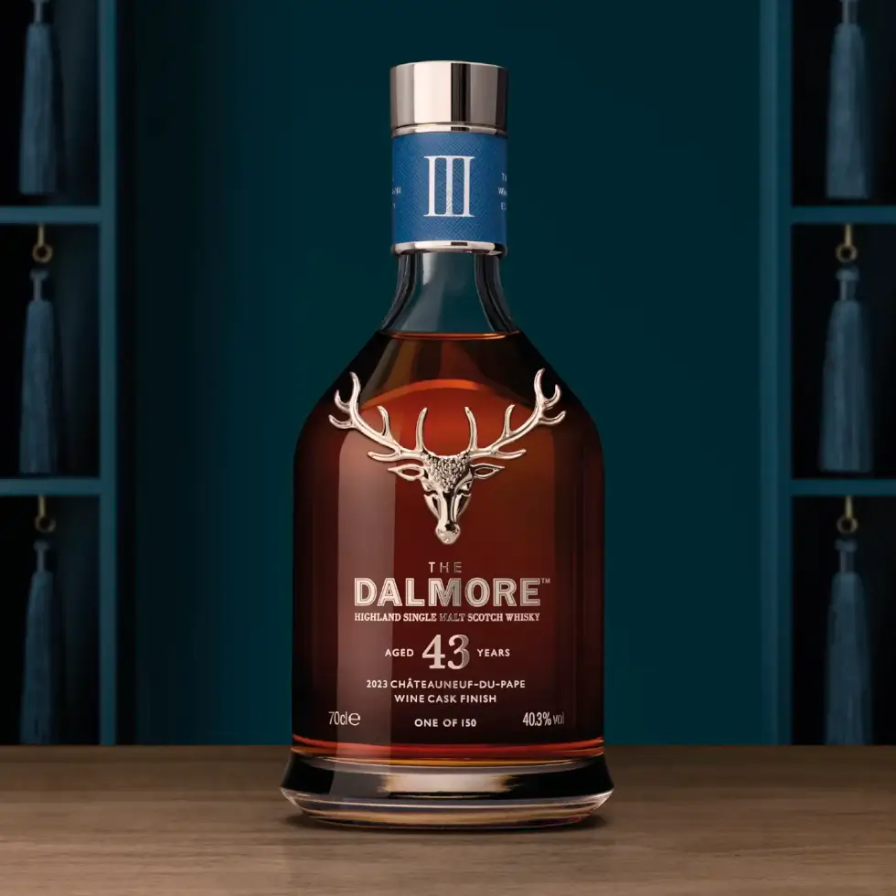 Finally, the oldest in the Cask Curation Series: The Red Wine Cask Edition is the 43 Year Old. “Bottled at 40.3% ABV, offers warm aromas of dried fruit and orange marmalade. On the palate, notes of forest berries, dark chocolate, hints of honeyed mango and warming spice,” writes The Dalmore.
