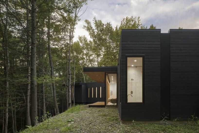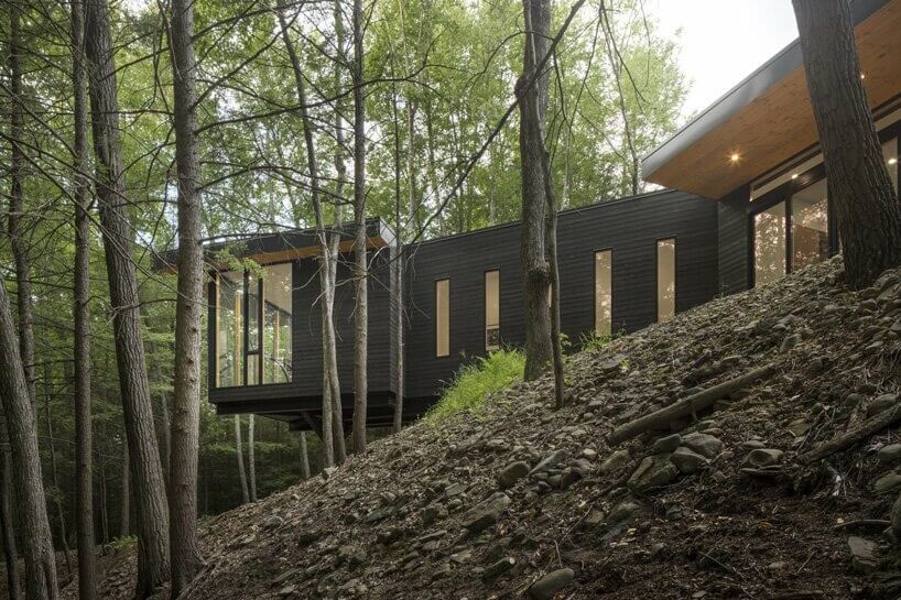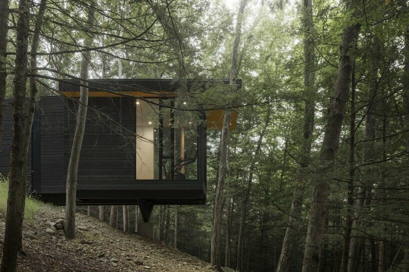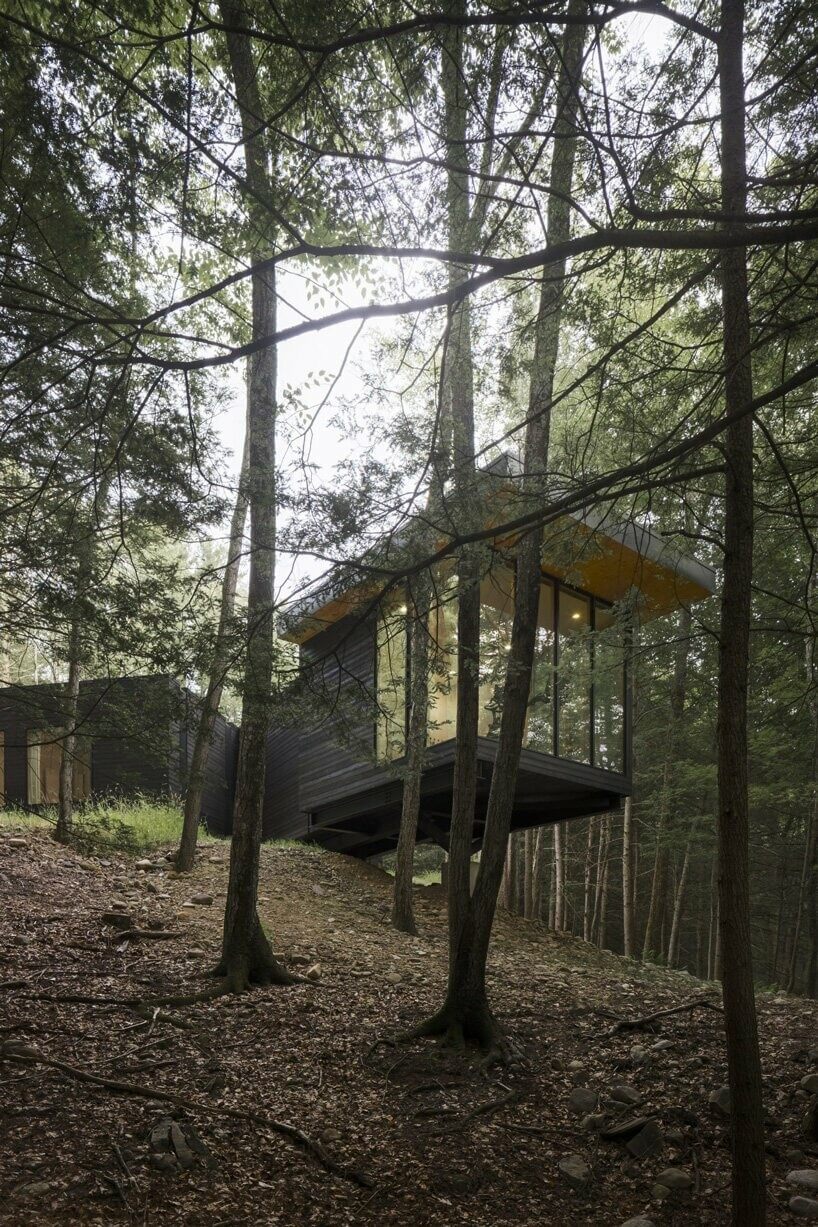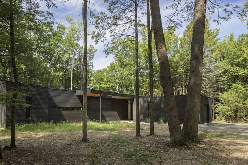 From the brilliant minds of Studio MM Architect, this residential property sits elevated at the foothills of the Catskill Mountains in New York’s Hudson Valley. It boasts floor-to-ceiling glass walls for an immersive feel of the dense wood. The client, a marathon runner, musician, traveler, businesswoman, and art collector, requested a thoughtfully designed home that caters to the inspiration.