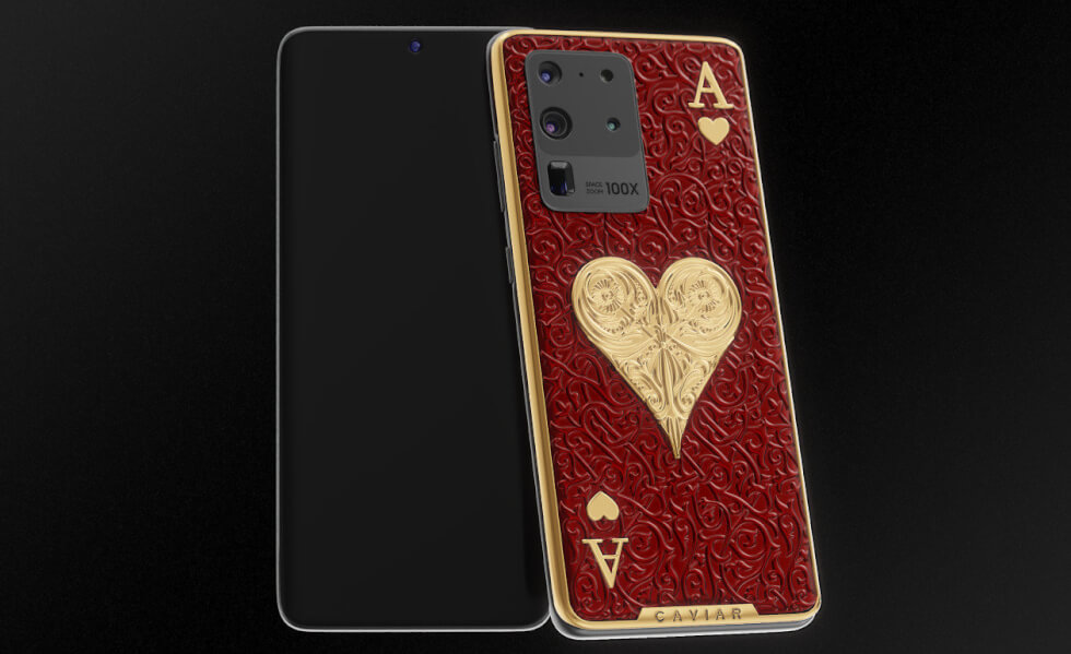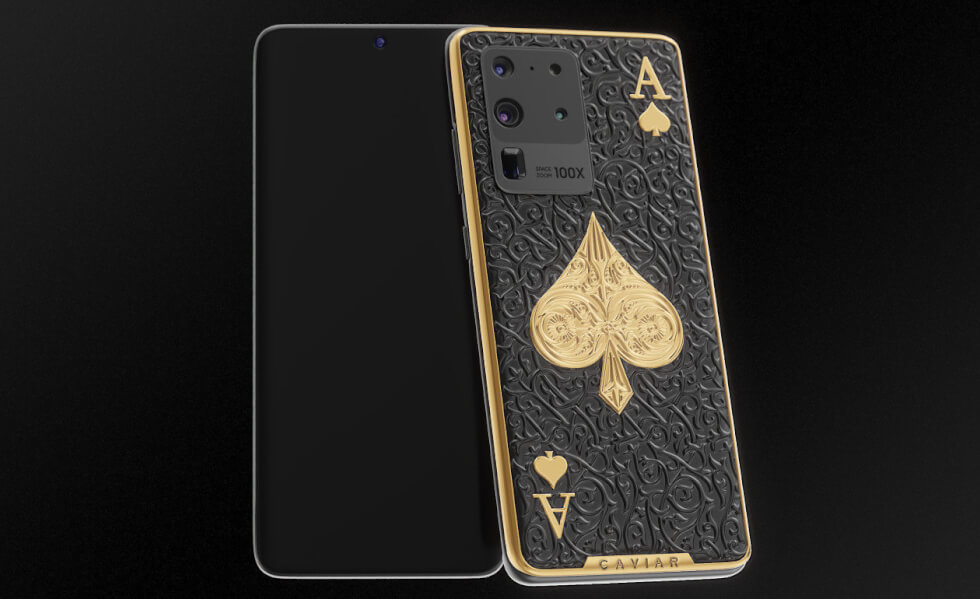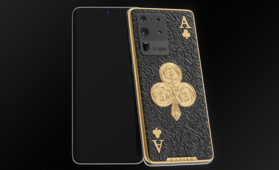 Caviar is offering its services to turn the Galaxy S20, Galaxy S20+ and Galaxy S20 Ultra into something even more exotic. Let’s start off with the collection that draws inspiration from a deck of playing cards. For the ace of clubs and ace of spades, the stock glass rear panel of the device is replaced with black composite onyx. The surface features intricate engravings that add to its mystique.