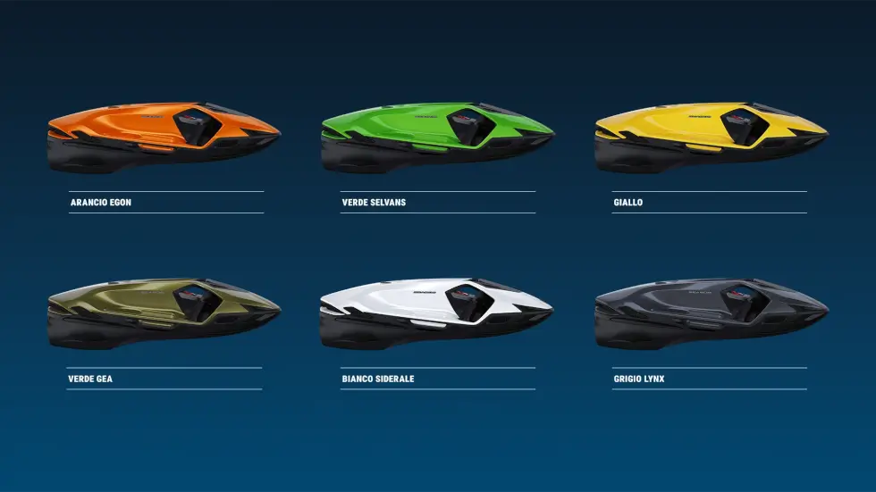 The SEABOB SE63 can generate around 8.4 horsepower (6.3 kW), enabling it to reach speeds of up to 22 mph. At this rate, you’re almost as fast as some species of sharks and right up there with a bottlenose dolphin. “The new wing system significantly enhances riding stability,” writes Lamborghini. Lastly, the available colors are based on what’s available for the supercars.