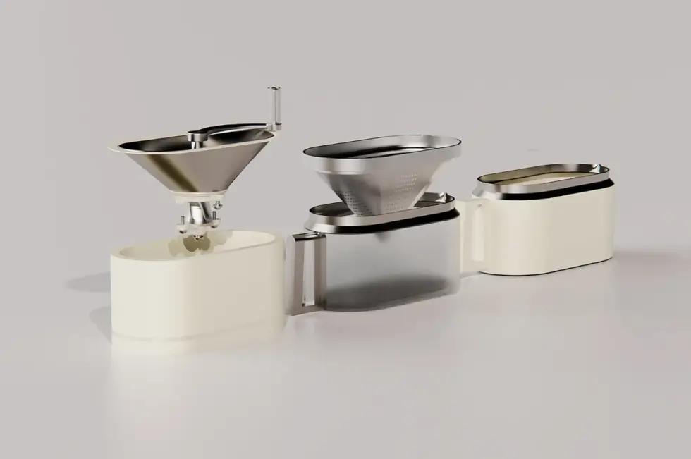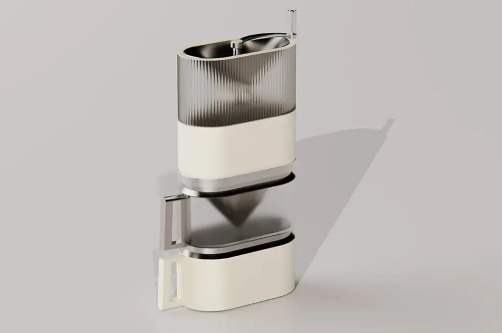 It resembles a flask upon first glance with its sleek, refined, and elegant aesthetic. But a clear closer look brings out the grinder handle on the top and several other parts to brew coffee. Inspired by the fun family stacking game Jenga (Coffee + Jenga + Cenga), this modular coffee set comes in three parts. Up top is the ribbed glass grinder for the coffee beans, the middle is a stainless steel dripper that holds the coffee grounds and hot water, before it drops to a translucent canister below, where you can also store the water.