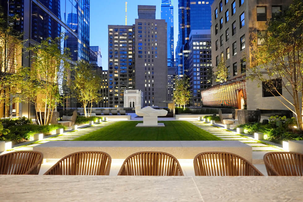 Towering glass windows provide guests with panoramic 360-degree views of the Hudson River, Central Park, and Manhattan. Rottet Studio pens the design. The aesthetics of the volumes take you back to when Art Deco was still the motif of choice.
