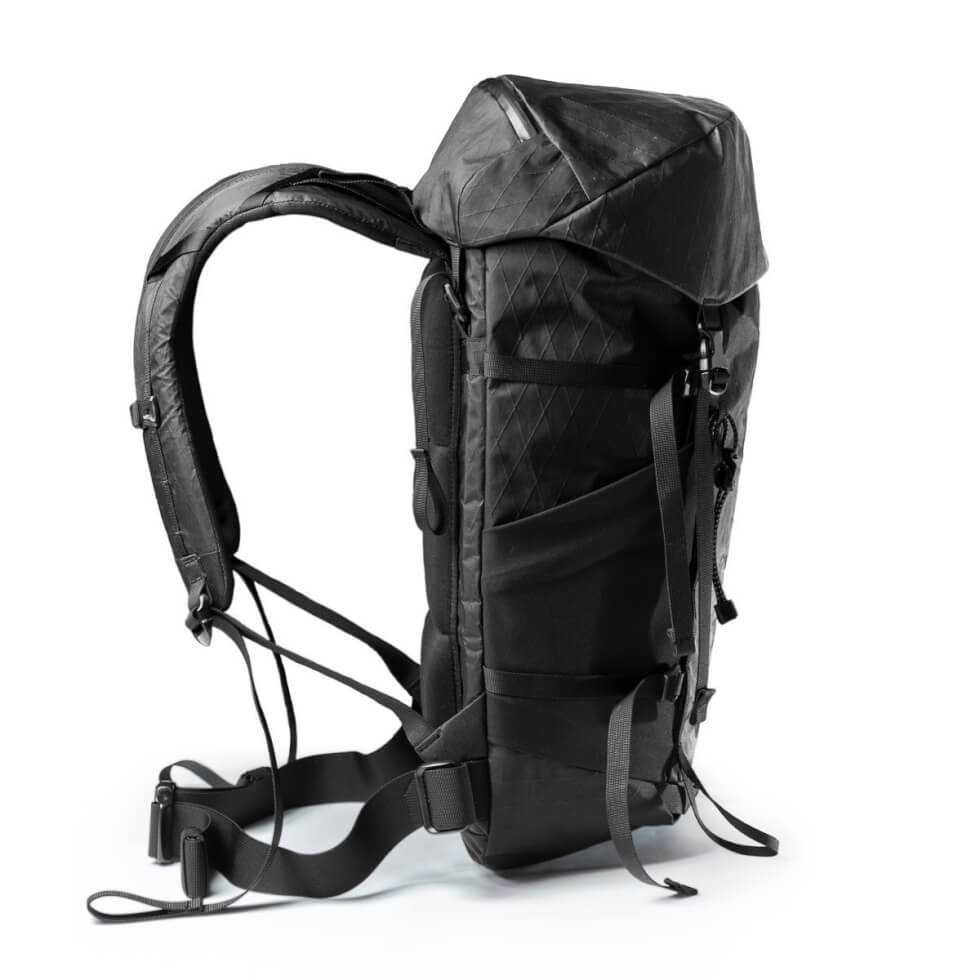 This backpack is your ideal companion whether you’re off on a week-long vacation or a hike up the mountains. Made of VX21 and VX42 X-PAC composite laminated fabrics, the bag can withstand rough outdoor conditions. Multiple layers of these textiles guarantee a lightweight yet extremely durable and water-resistant pack. The textiles feature a durable nylon face fabric laminated to 22º X-PLY reinforcement and polyester film for maximum stability and weather resistance.
