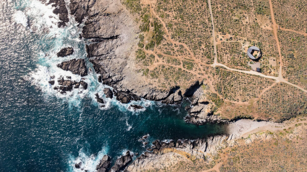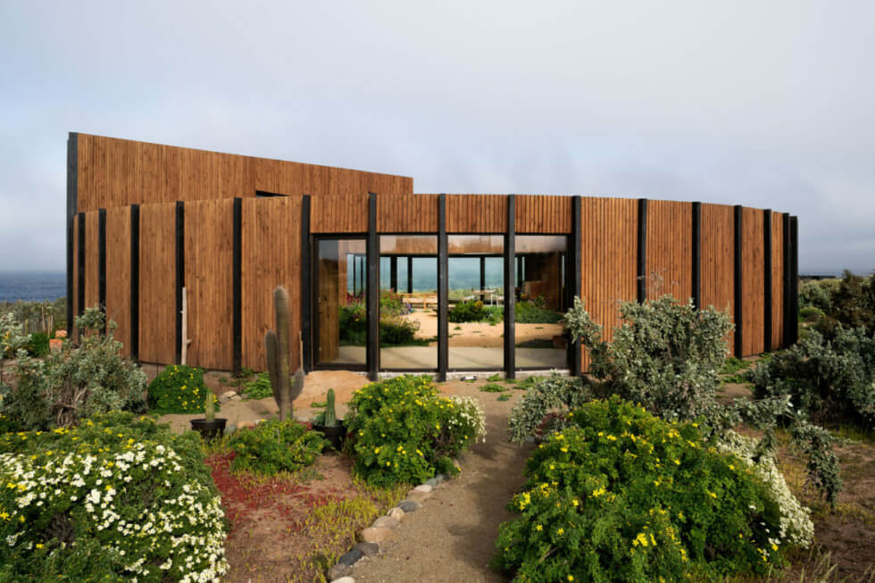 This stunning modern home is set in a remote yet picturesque setting in the IV Region of Chile, at the start of the Atacama Desert.  It features a high facade and clever design aimed to protect the shelter from the sun rays and harsh northern wind.  A high palisade surrounds the property which looks into a covered terrace. Then it opens into an interior that offers spectacular views of the ocean beyond at all times. The sound of the breaking waves hitting the rocks lulls homeowners. It brings a sense of calm and relaxation.