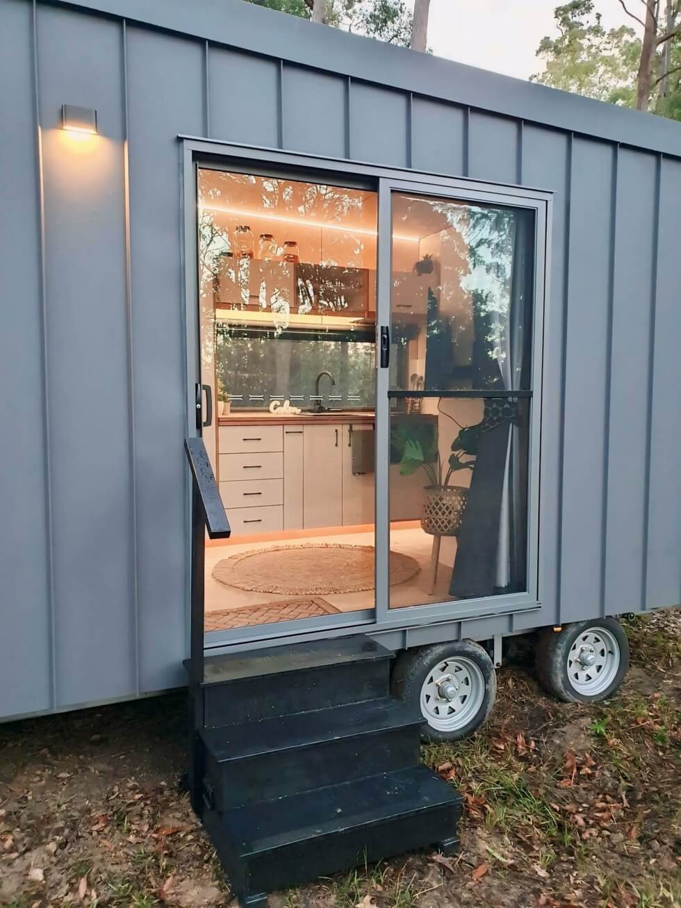 It’s reminiscent of container house living with Trimdeck Basalt Matt and Lunawood cladding for a practical and modern appeal. It also has aluminum windows with tempered glass that offers UV protection. Built on a durable 5m x 2.5m galvanized trailer chassis, it’s ready for road travel but great as a stationary shelter too.
