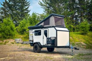 Meanwhile, the bathroom in the Chipper Tiny House is located on the other side next to the kitchen accessible via a sliding glass door. It’s surprisingly generous with a shower, small vanity sink, flushing toilet, and storage space. In terms of power, it benefits from an RV-style hookup although it’s also customizable with off-grid capabilities via solar panels, water tanks, and composting toilet.