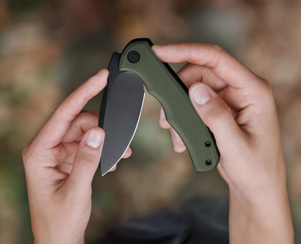 This folder sits deep in any pocket for easy carrying with a built-in pocket clip. Its chamfered edges allow four fingers on the 0.45″ thick G10 handle for a secure grip while still being maneuverable. Using G10 scales on the CIVIVI Mini Praxis Flipper Knife also makes it smooth to the touch, extremely durable, and resistant to moisture and temperature changes.