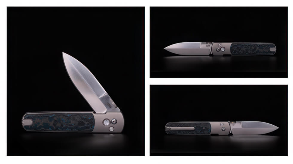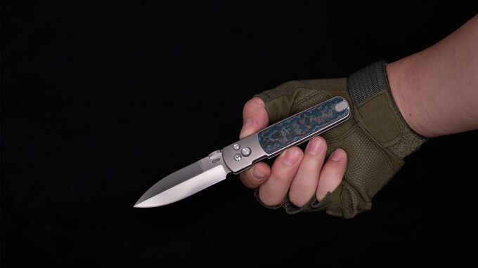 Then there’s the Classy Carbon, which has a titanium and carbon fiber inlay handle along with an S90V blade. Also lightweight at 3.35 ounces. Meanwhile, the third called Suit and Ti weighs 3.23 oz and also has an S90V blade that complements a titanium handle with Fat Carbon “Arctic Storm” inlay.